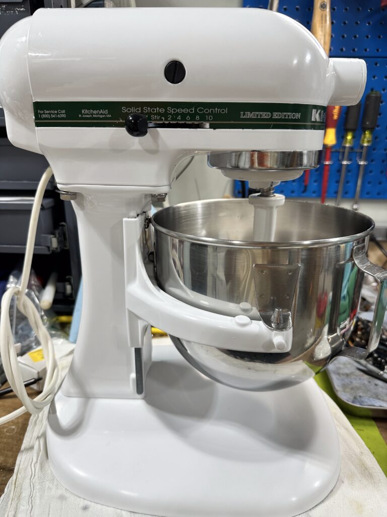 When this is done, the mixer is ready to ship. The bowl and accessories (beater, dough hook, wire whisk) can be shipped separately, if needed.